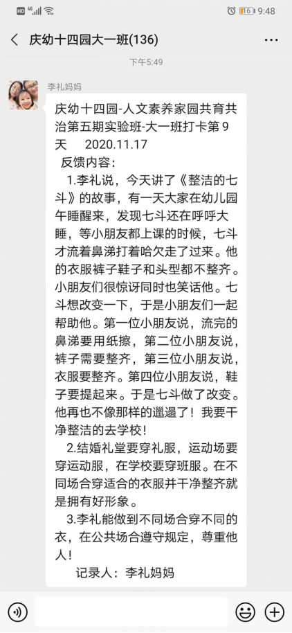 幼儿园是人文素养培育的积极倡导者和实施者,家庭才是人文素养培育的主阵地!幼儿园会在每天的课程结束后,结合课程核心人文元素和具体活动内容,给予家长具体可行的家庭指导建议,带动家庭提升人文家教能力,助力幼儿人文素养培育。快看看孩子们的课后任务卡及家长的真实反馈吧!