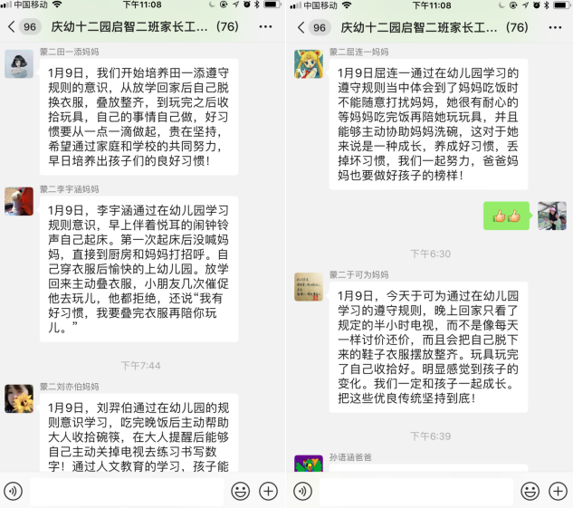 课后幼儿转变情况家长的反馈信息