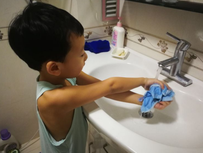 我也在思考着如何化被动为主动,于是我和仲老师请教,仲老师给我发了几张中秋节孩子们去大庆市儿童救护中心看望那里孩子的照片,建议我给霖霖看看。于是翻着照片,我给霖霖讲那里有的孩子身体有疾病,没有父母的陪伴,却能自己照顾自己。那些照片霖霖看了很久,对他促动很大。那天我们聊了很多,他说过年就六岁了,他是个大孩子了,他要自己的事情自己做。接下来的日子里,霖霖不仅每天独立起床、穿衣服、刷牙、吃饭,还能主动帮我做很多家务。