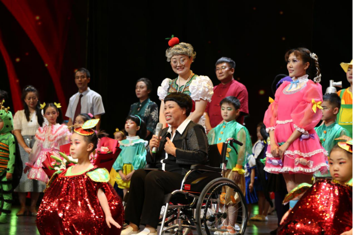 6月11日下午,由包钢幼教处原创的儿童人文音乐剧《藏在苹果里的秘密》在包头大剧院精彩首演。中国教育发展战略学会人文教育专业委员会常务副理事长何庆,副理事长黄书进、俞亚东,副秘书长孔玉华应邀观看了演出。何庆常务副理事长作为剧中“苹果奶奶”的创作原型,观看首演并上台与全体演员和现场观众见面,给大家以巨大鼓舞。