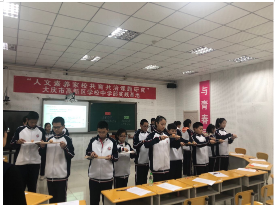 第一节课是让孩子们了解,正文化是引领人间正道,成就美好人生的思维活动、心理状态和意识的总和;逆文化是指背离人间正道,走向人生歧途的思维活动、心理状态和意识的总和。这节课结束之后同学们要学会判断选择留下正文化,主动摒弃扔掉逆文化。同学们刚接触到这个话题,还很陌生,但通过《一句话的杀伤力》懂得了指责父母、不尊重父母是逆文化,我们要扔掉;关爱父母、承担家庭责任是正文化,我们要留下。观看视频<family>,知道要每天坚持承担两项家务劳动:如:打扫客厅卫生、餐后整理餐厅等。并且通过生命体验学生学会呵护自己的生命,关爱家人的健康。又通过观看“一个对三个”的视频材料,知道他们应该承担的更多。在第一课时,同学们还是很放不开比较拘谨,也不太敢举手回答问题。